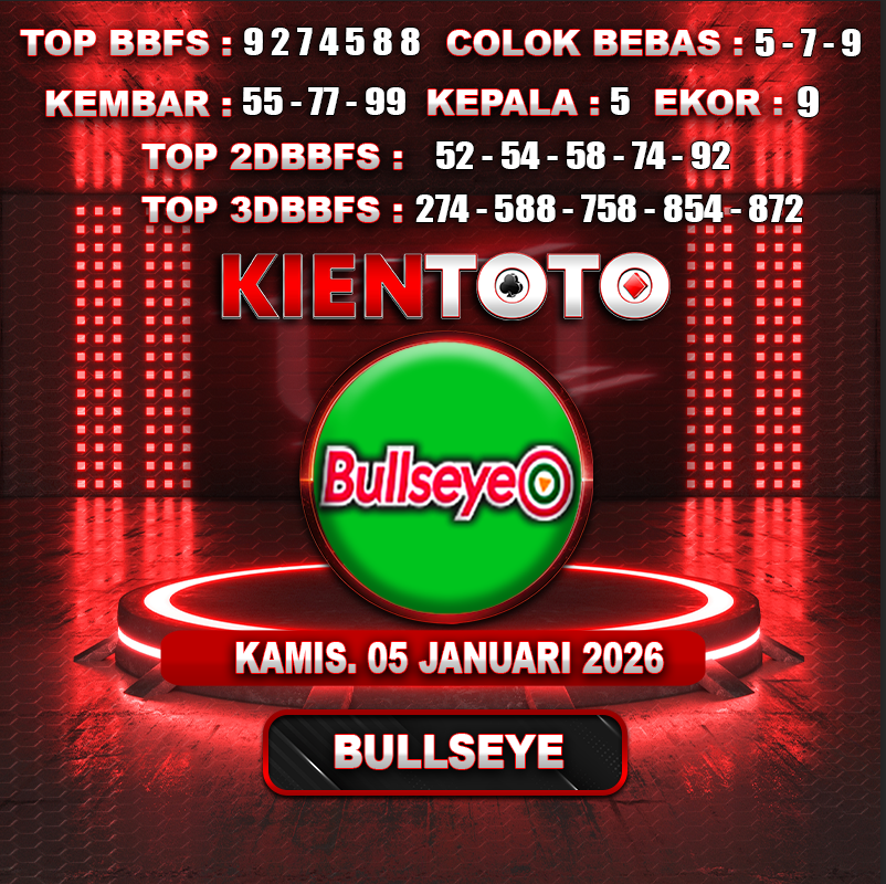 PREDIKSI TOGEL BULLSEYE 05 FEBRUARI 2026 Selamat Datang dan Selamat Bergabung di Situs Prediksi Togel Online. Permainan Togel Online saat ini telah menarik banyak perhatian para bettor di Indonesia. Jika dulunya Anda harus menikmati permainan togel melalui bandar togel darat, maka sekarang ini Anda hanya perlu mempercayakan KIENTOTO sebagai Bandar Togel Online Resmi dan Terpercaya. Melihat semakin tingginya minat para pecinta togel online, kami menyediakan Situs Prediksi Togel Online dan Bocoran Togel Jitu yang bisa Anda jadikan sebagai acuan sebelum melakukan pemasangan angka togel.