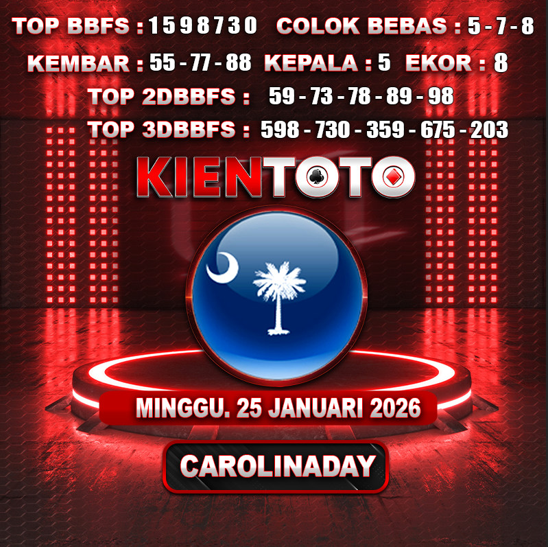 PREDIKSI TOGEL CAROLINA DAY 25 JANUARI 2026 Selamat Datang dan Selamat Bergabung di Situs Prediksi Togel Online. Permainan Togel Online saat ini telah menarik banyak perhatian para bettor di Indonesia. Jika dulunya Anda harus menikmati permainan togel melalui bandar togel darat, maka sekarang ini Anda hanya perlu mempercayakan KIENTOTO sebagai Bandar Togel Online Resmi dan Terpercaya. Melihat semakin tingginya minat para pecinta togel online, kami menyediakan Situs Prediksi Togel Online dan Bocoran Togel Jitu yang bisa Anda jadikan sebagai acuan sebelum melakukan pemasangan angka togel.