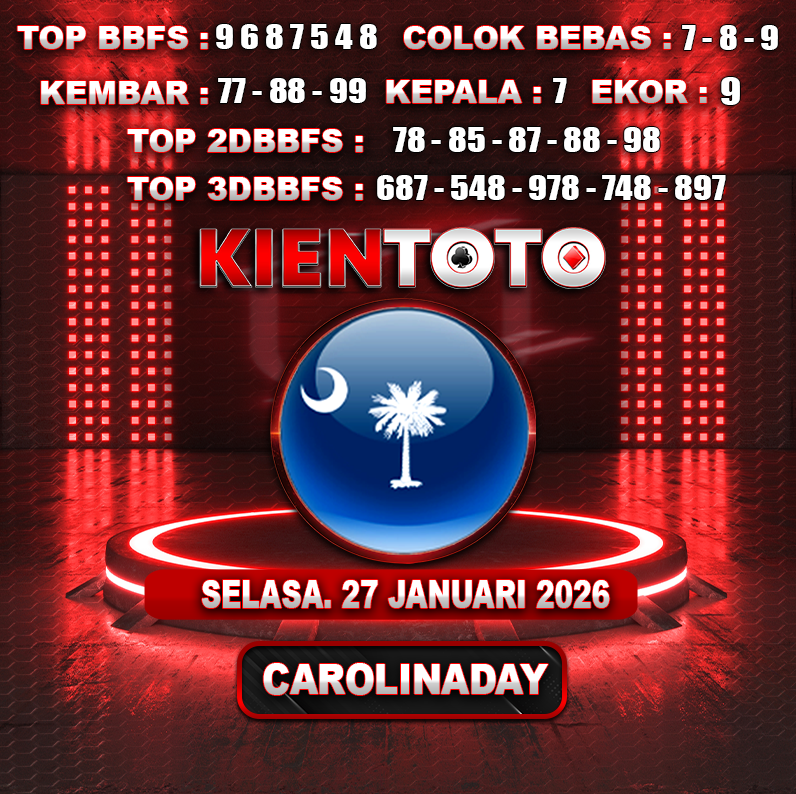 PREDIKSI TOGEL CAROLINA DAY 27 JANUARI 2026 Selamat Datang dan Selamat Bergabung di Situs Prediksi Togel Online. Permainan Togel Online saat ini telah menarik banyak perhatian para bettor di Indonesia. Jika dulunya Anda harus menikmati permainan togel melalui bandar togel darat, maka sekarang ini Anda hanya perlu mempercayakan KIENTOTO sebagai Bandar Togel Online Resmi dan Terpercaya. Melihat semakin tingginya minat para pecinta togel online, kami menyediakan Situs Prediksi Togel Online dan Bocoran Togel Jitu yang bisa Anda jadikan sebagai acuan sebelum melakukan pemasangan angka togel.