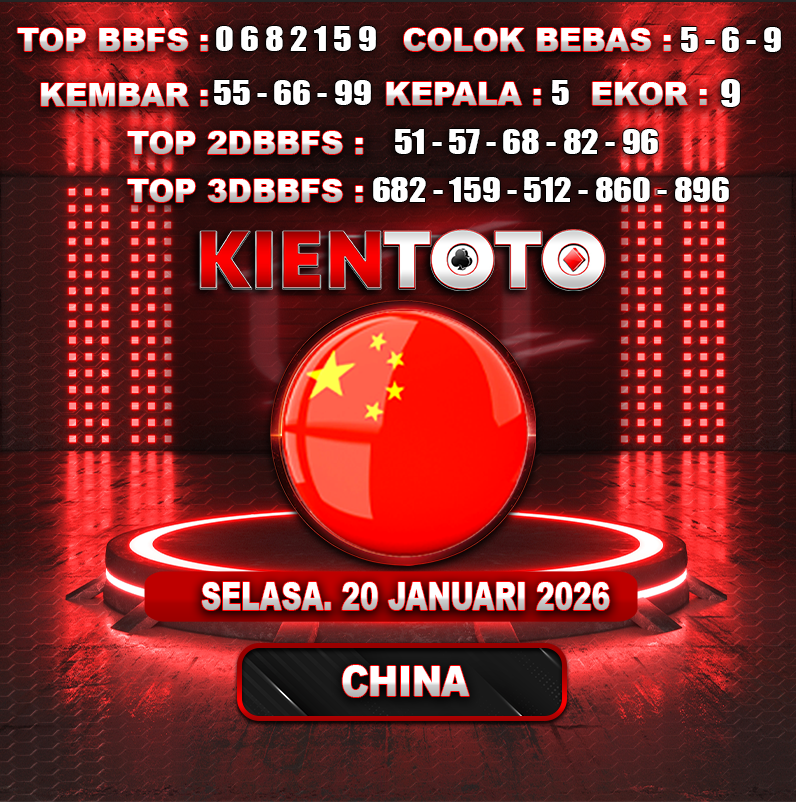 PREDIKSI TOGEL CHINA 20 JANUARI 2026 Selamat Datang dan Selamat Bergabung di Situs Prediksi Togel Online. Permainan Togel Online saat ini telah menarik banyak perhatian para bettor di Indonesia. Jika dulunya Anda harus menikmati permainan togel melalui bandar togel darat, maka sekarang ini Anda hanya perlu mempercayakan KIENTOTO sebagai Bandar Togel Online Resmi dan Terpercaya. Melihat semakin tingginya minat para pecinta togel online, kami menyediakan Situs Prediksi Togel Online dan Bocoran Togel Jitu yang bisa Anda jadikan sebagai acuan sebelum melakukan pemasangan angka togel.