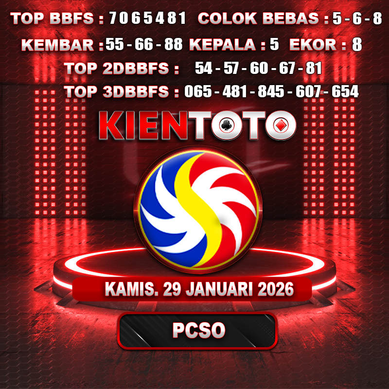 PREDIKSI TOGEL PCSO 29 JANUARI 2026 Selamat Datang dan Selamat Bergabung di Situs Prediksi Togel Online. Permainan Togel Online saat ini telah menarik banyak perhatian para bettor di Indonesia. Jika dulunya Anda harus menikmati permainan togel melalui bandar togel darat, maka sekarang ini Anda hanya perlu mempercayakan KIENTOTO sebagai Bandar Togel Online Resmi dan Terpercaya. Melihat semakin tingginya minat para pecinta togel online, kami menyediakan Situs Prediksi Togel Online dan Bocoran Togel Jitu yang bisa Anda jadikan sebagai acuan sebelum melakukan pemasangan angka togel.