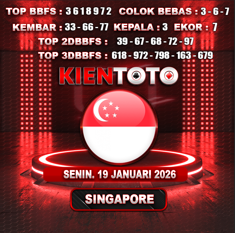 PREDIKSI TOGEL SINGAPORE 19 JANUARI 2026 Selamat Datang dan Selamat Bergabung di Situs Prediksi Togel Online. Permainan Togel Online saat ini telah menarik banyak perhatian para bettor di Indonesia. Jika dulunya Anda harus menikmati permainan togel melalui bandar togel darat, maka sekarang ini Anda hanya perlu mempercayakan KIENTOTO sebagai Bandar Togel Online Resmi dan Terpercaya. Melihat semakin tingginya minat para pecinta togel online, kami menyediakan Situs Prediksi Togel Online dan Bocoran Togel Jitu yang bisa Anda jadikan sebagai acuan sebelum melakukan pemasangan angka togel.